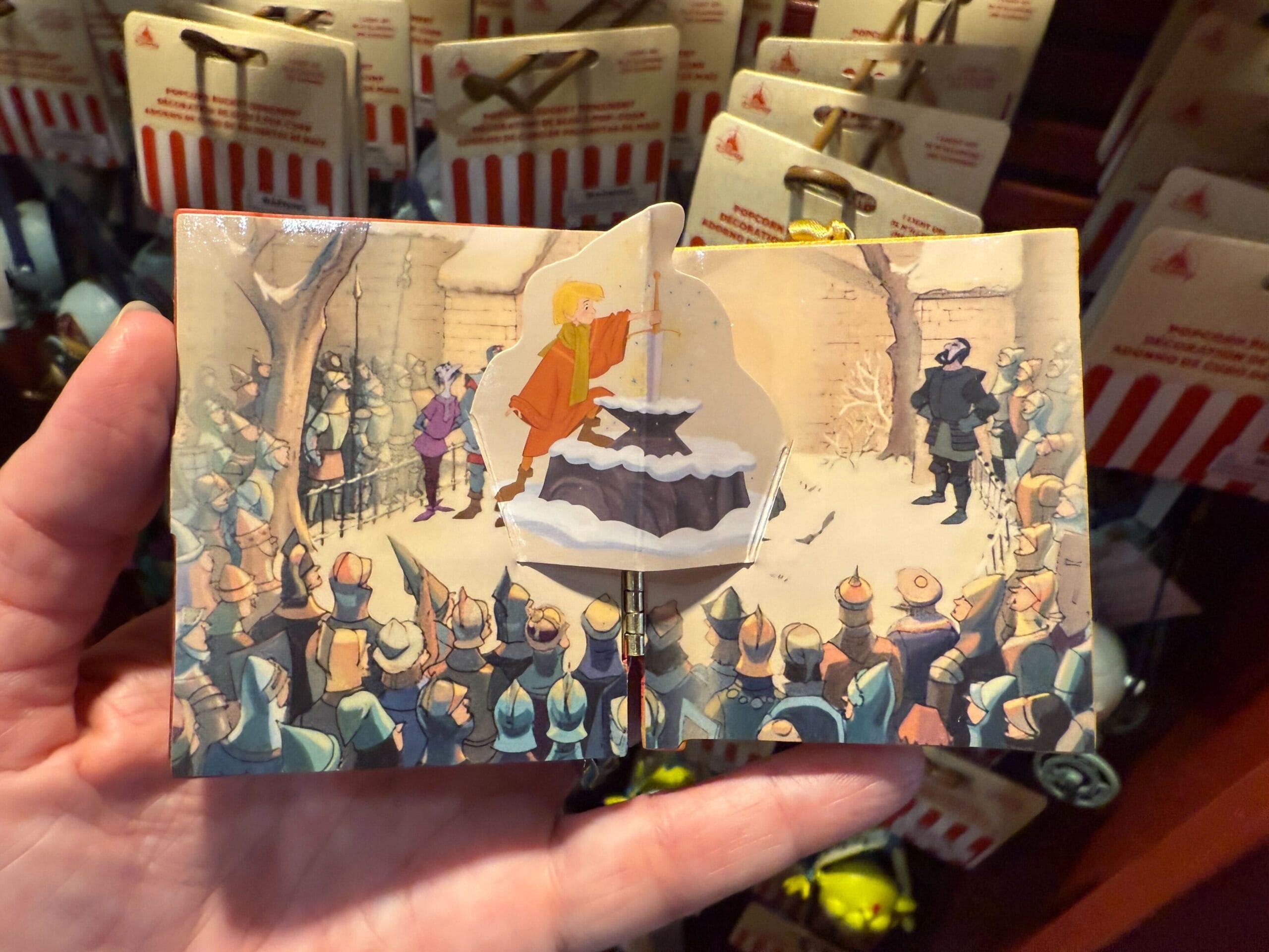 Inside is an image of the scene when Arthur pulls the sword from the stone. The image of Arthur and the sword pops out from the rest of the scene.